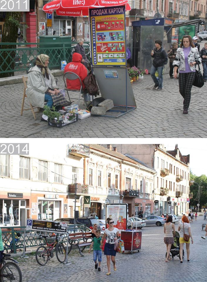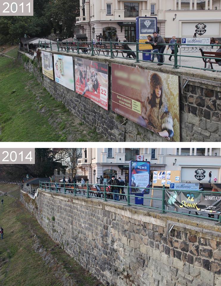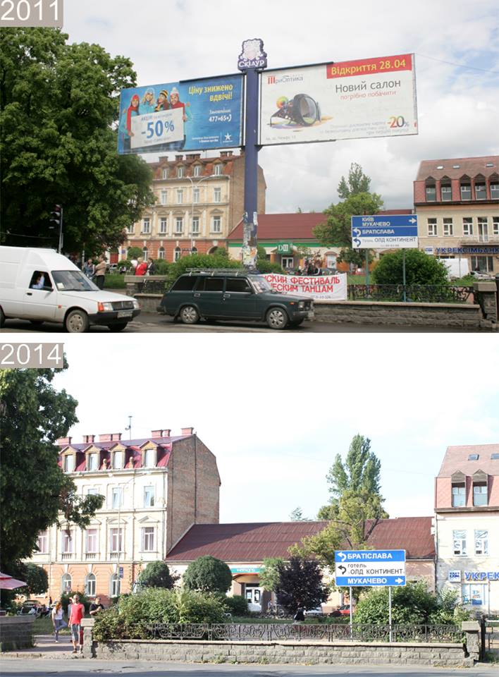 Ужгородці настільки звикли до того, що в місті не відбувається змін на краще, що не завжди й помічають, коли вони відбуваються. Так, багатьом здається, що “вічна тема” білбордів у центрі міста й захаращення центральної частини Ужгорода роками стоїть на місці. Між тим, щоб зрозуміти, що це не так, достатньо порівняти сучасні фото Ужгорода з знімками трирічної давності.