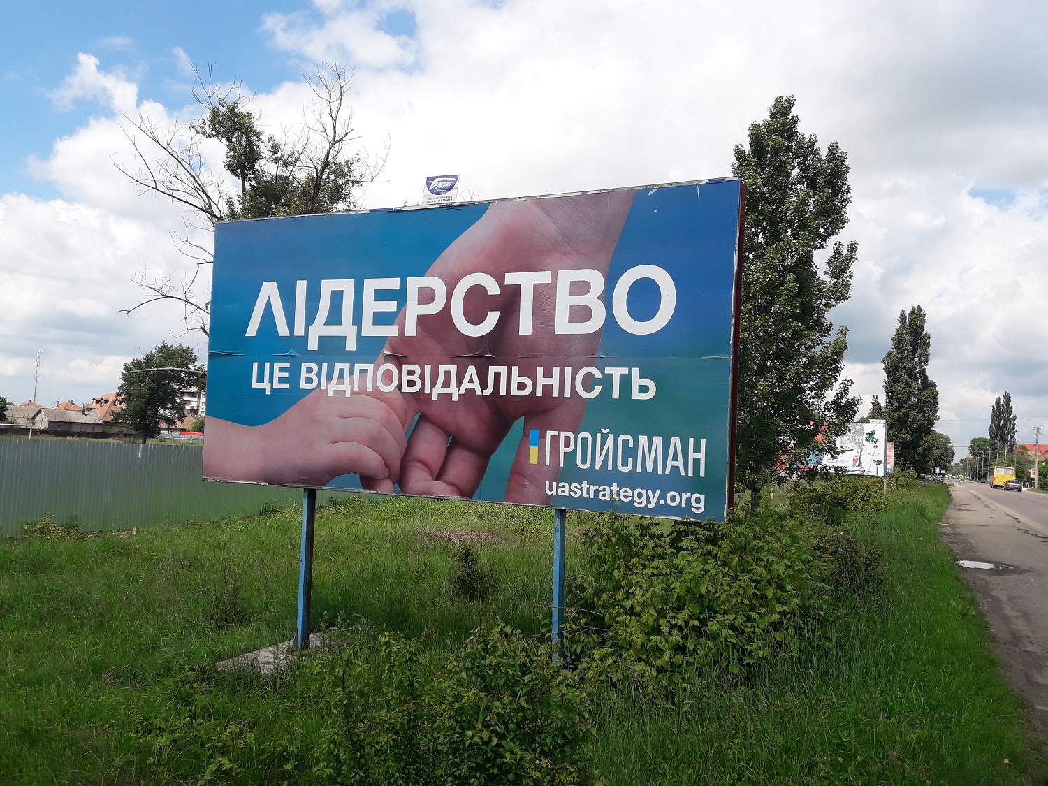 Також на вулицях міста з’явилися борди з рекламою партії Володимира Гройсмана із написом “Українська стратегія” та підписом – Володимир Гройсман.