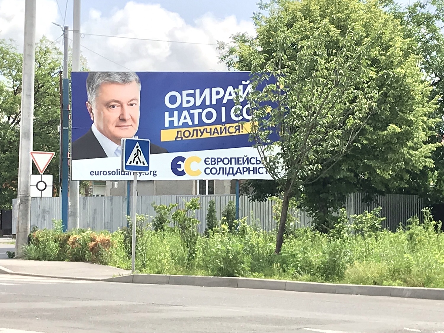 У Мукачівському, Тячівському,  Міжгірському, Свалявському районах та Ужгороді розміщена зовнішня реклама партії “Європейська солідарність”. На плакатах зображене фото її лідера Петра Порошенка та напис “Обирай НАТО і ЄС! Долучайся!”.