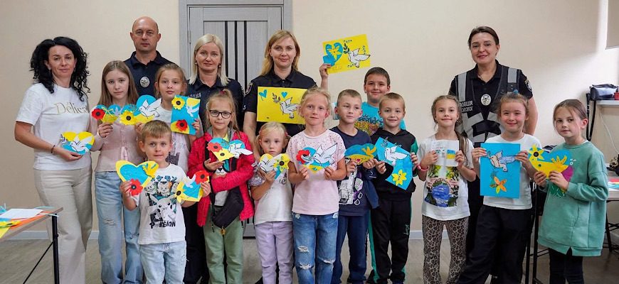 З нагоди славного свята діти правоохоронців та військовослужбовців, які нині несуть службу в зоні бойових дій, власноруч виготовили вітальні листівки для воїнів, що проходять лікування в медзакладах міста.