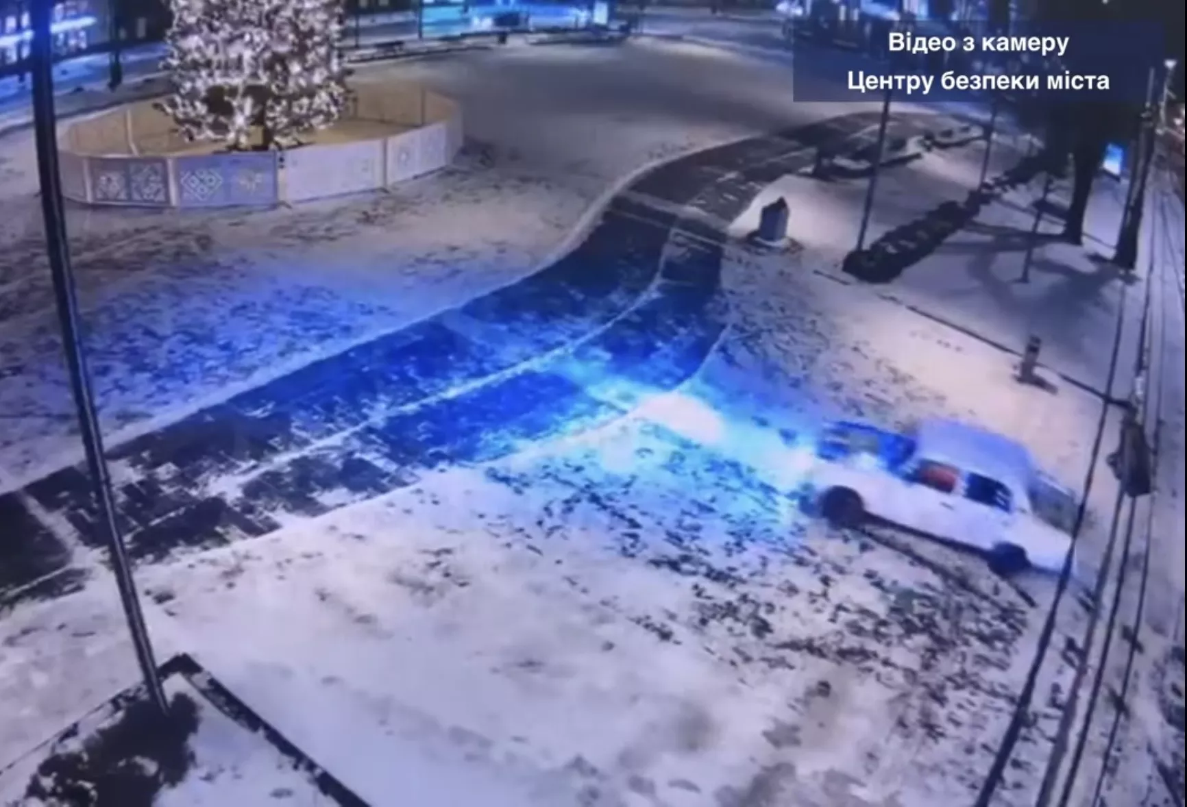У центрі Львова водій вирішив «випробувати долю» та влаштував дрифт під новорічною ялинкою на площі перед Оперним театром.