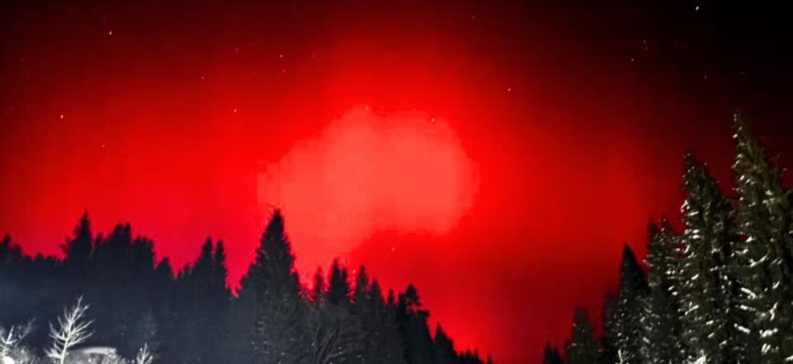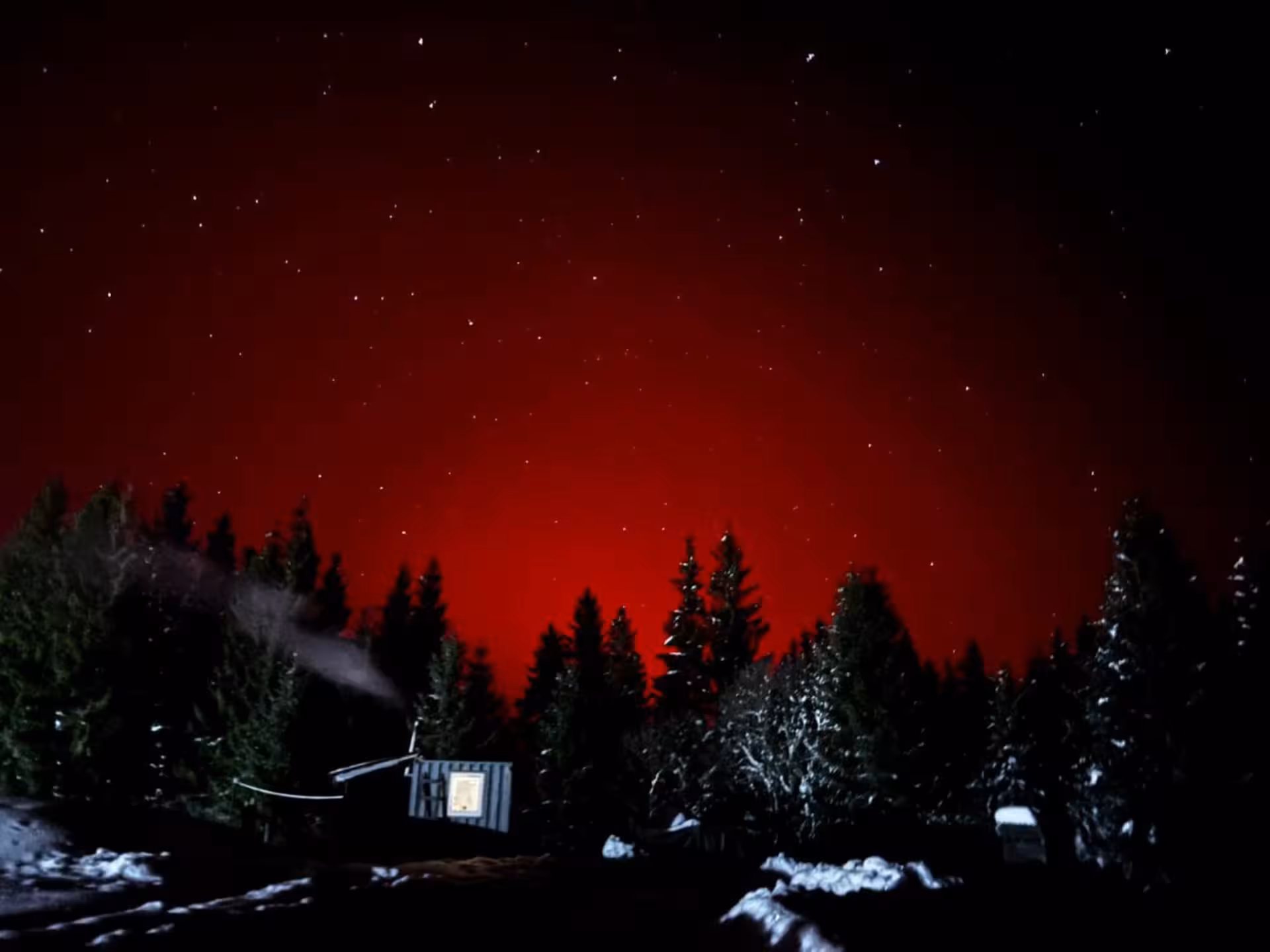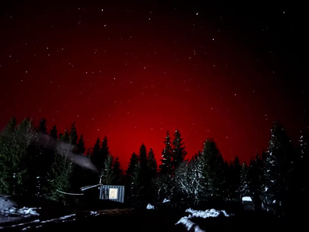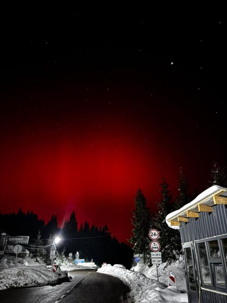 Полярне сяйво виникає, коли заряджені частинки сонячного вітру взаємодіють із магнітним полем Землі, підсвічуючи небо зеленими, рожевими, фіолетовими і рідше багряними спалахами. В Україні такі багряні відтінки трапляються вкрай рідко.