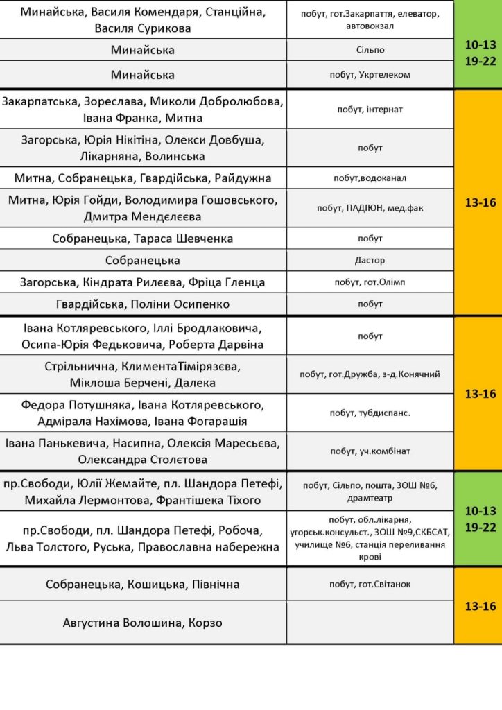 Заплановані графіки МОЖЛИВИХ погодинних відключень електроенергії в Ужгороді на завтра, 17 листопада.