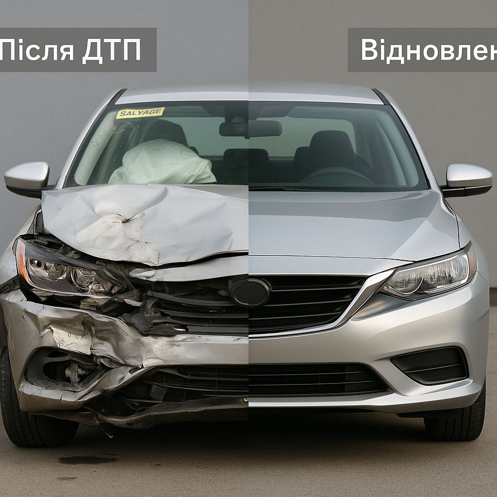 Машина проходила як total loss у страховика, на аукціоні — з сильним фронтальним/боковим ударом. Після відновлення — ідеальні зазори, нове скло, «свіжа фарба», але: геометрія кузова без стенду, airbag off, блоки SRS перепрошиті.