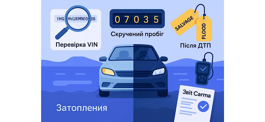 - США, страхові тотали/затоплення. Частина машин приїжджає з позначкою salvage або flood. Після відновлення вони виглядають «цивільно», але мають критичні наслідки: прихована корозія електрики, модулів безпеки, батарей (в EV/гібридах).