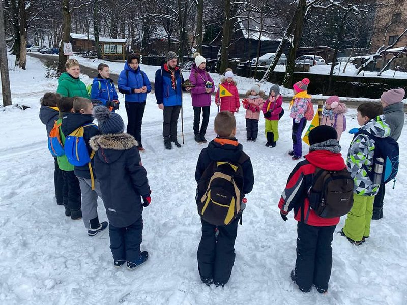 Нарешті наше новацтво зібралося разом. Рій “Вогняні шаркані” та “Веселкові єдинорожки” разом зі своїми виховниками – сестричкою Танею та братчиком Іштваном вирушили зимовим лісом, щоб побачити велич відреставрованої вежі Невицького замку.