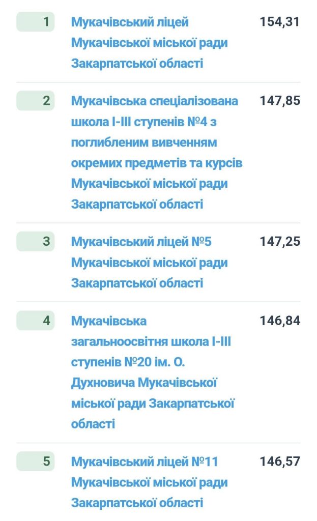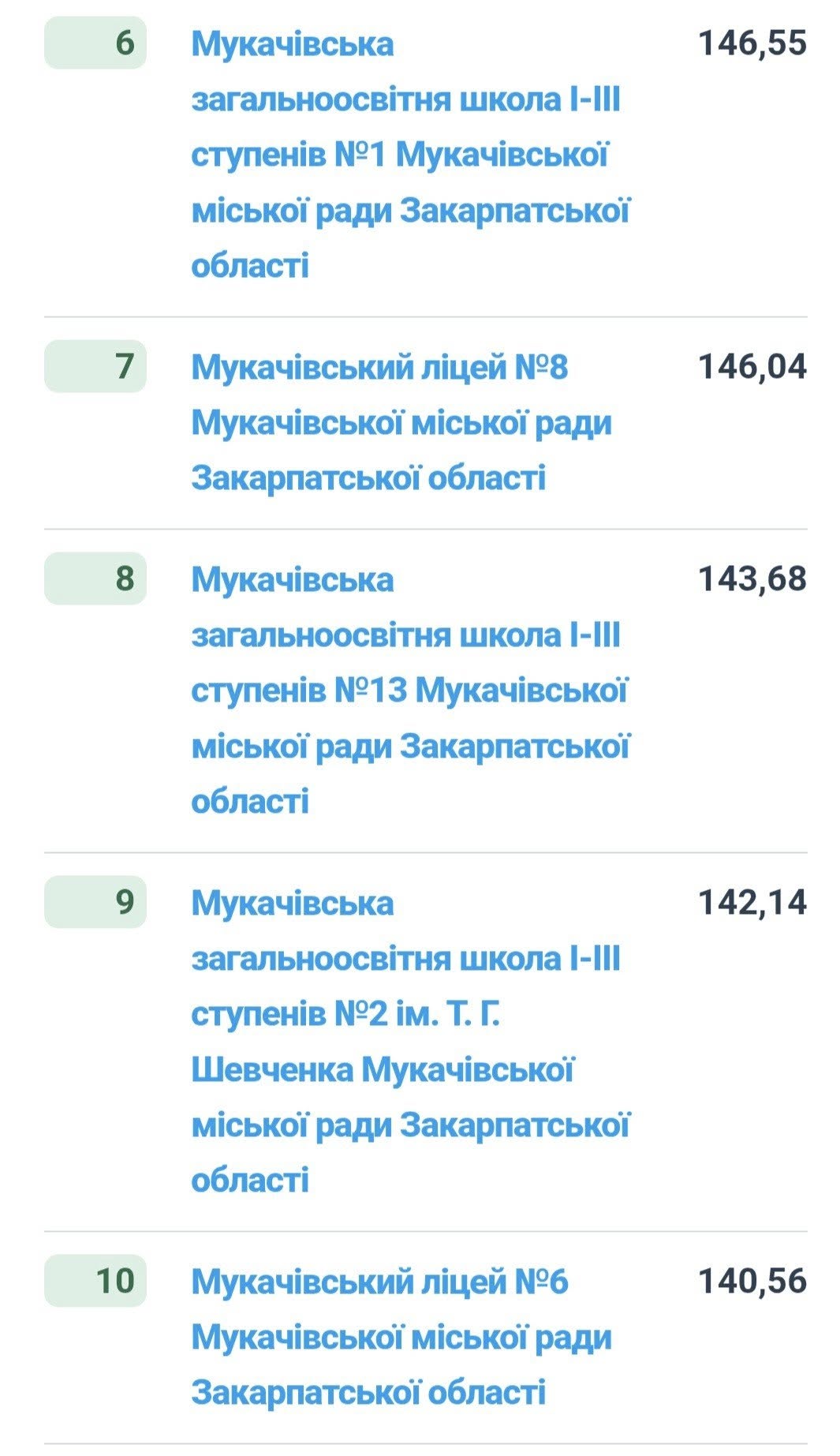 Видання education.ua оприлюднило рейтинг шкіл Мукачева за підсумками національного мультипредметного тесту 2025 року.