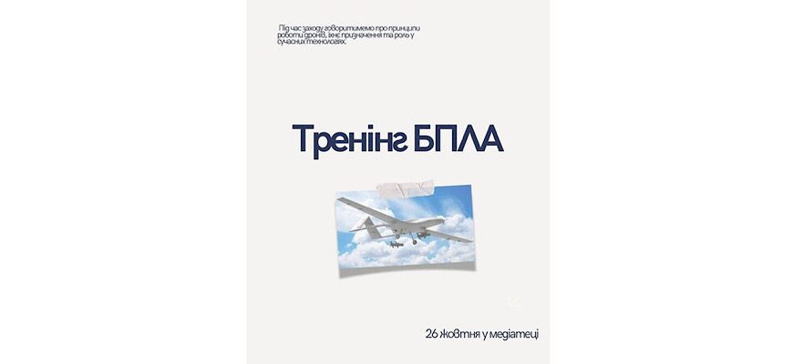 У неділю, 26 жовтня, у Першій Львівській Медіатеці, що розташована на вул. Мулярська 2а, львів’яни матимуть змогу дізнатися більше про те, як працюють дрони та які їхні можливості. Окрім лекції, учасники зможуть взяти участь у майстеркласі з польоту дрона. Початок тренінгу о 13:00.