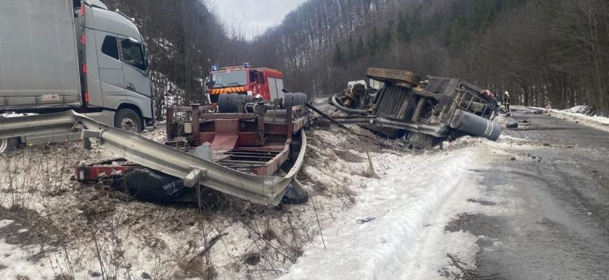 За викликом виїхали співробітники поліції Воловця. Вони з’ясували, що аварія трапилася за участі вантажівки зі спеціалізованим напівпричепом, завантаженим автомобільним краном, та позашляховика.