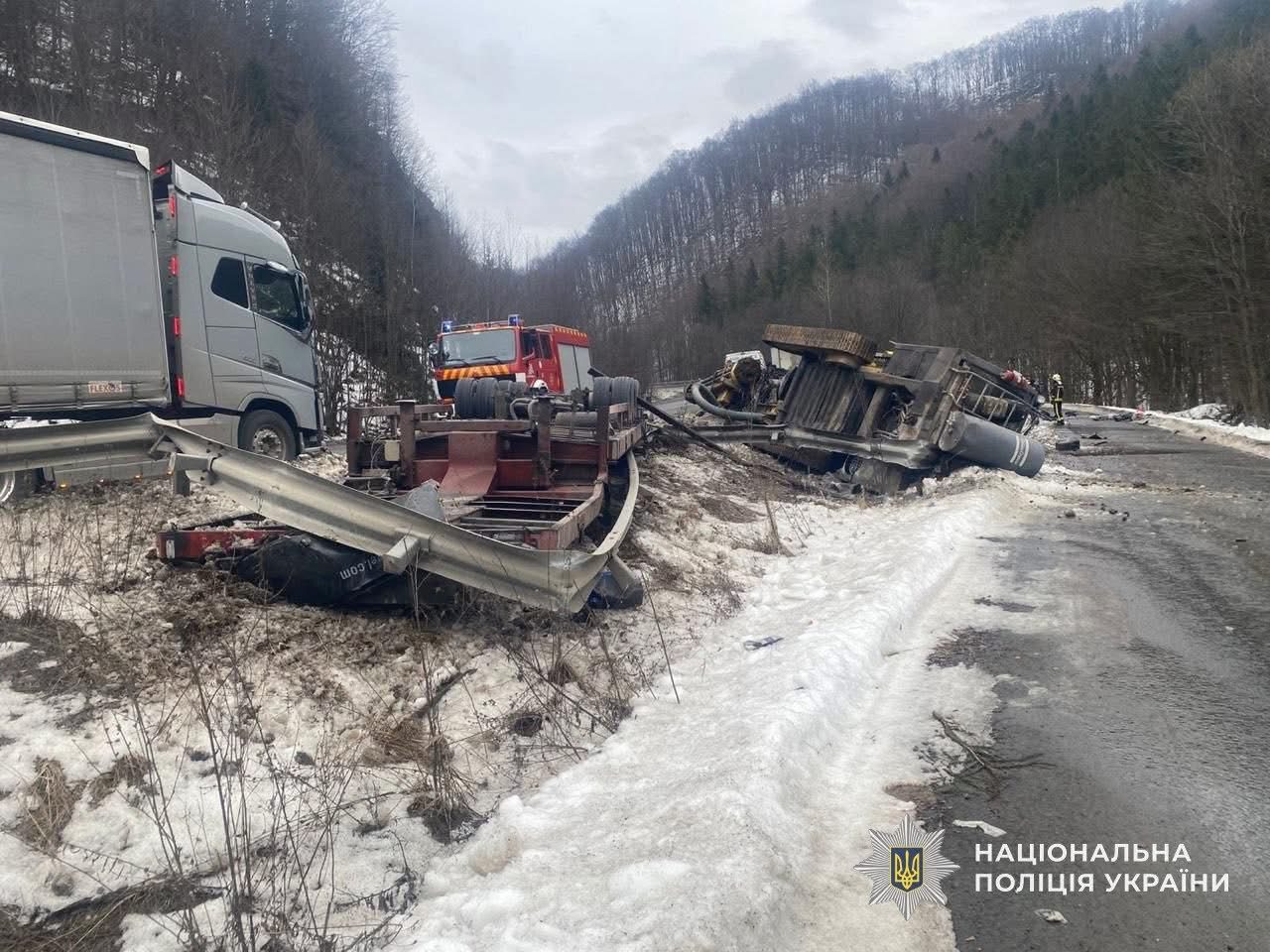 Дорожньо-транспортна пригоди трапилася сьогодні, 30 січня, близько 11:30. Тоді до поліції надійшло повідомлення про автопригоду з потерпілими за участі двох вантажівок та легкового авто.