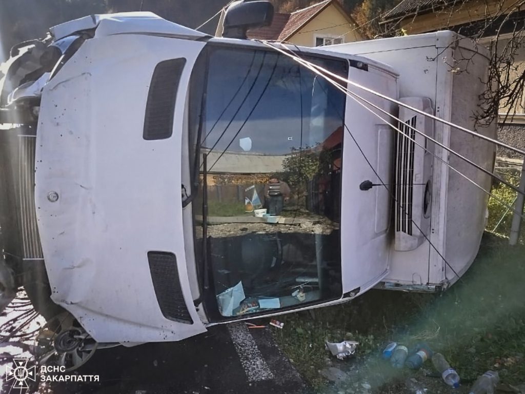На місце події виїхали рятувальники 20-ї державної пожежно-рятувальної частини міста Рахів. По прибуттю вони з’ясували, що 21-річний мешканець міста Мукачево, не впоравшись із керуванням автомобіля Mercedes-Benz, зіткнувся з опорою ліній електропередач. Унаслідок удару, транспортний засіб перекинувся на бік і з’їхав у кювет. Водій самостійно вибрався з автомобіля ще до прибуття рятувальників. Після цього його доставили машиною екстреної медичної допомоги до Рахівської районної лікарні.