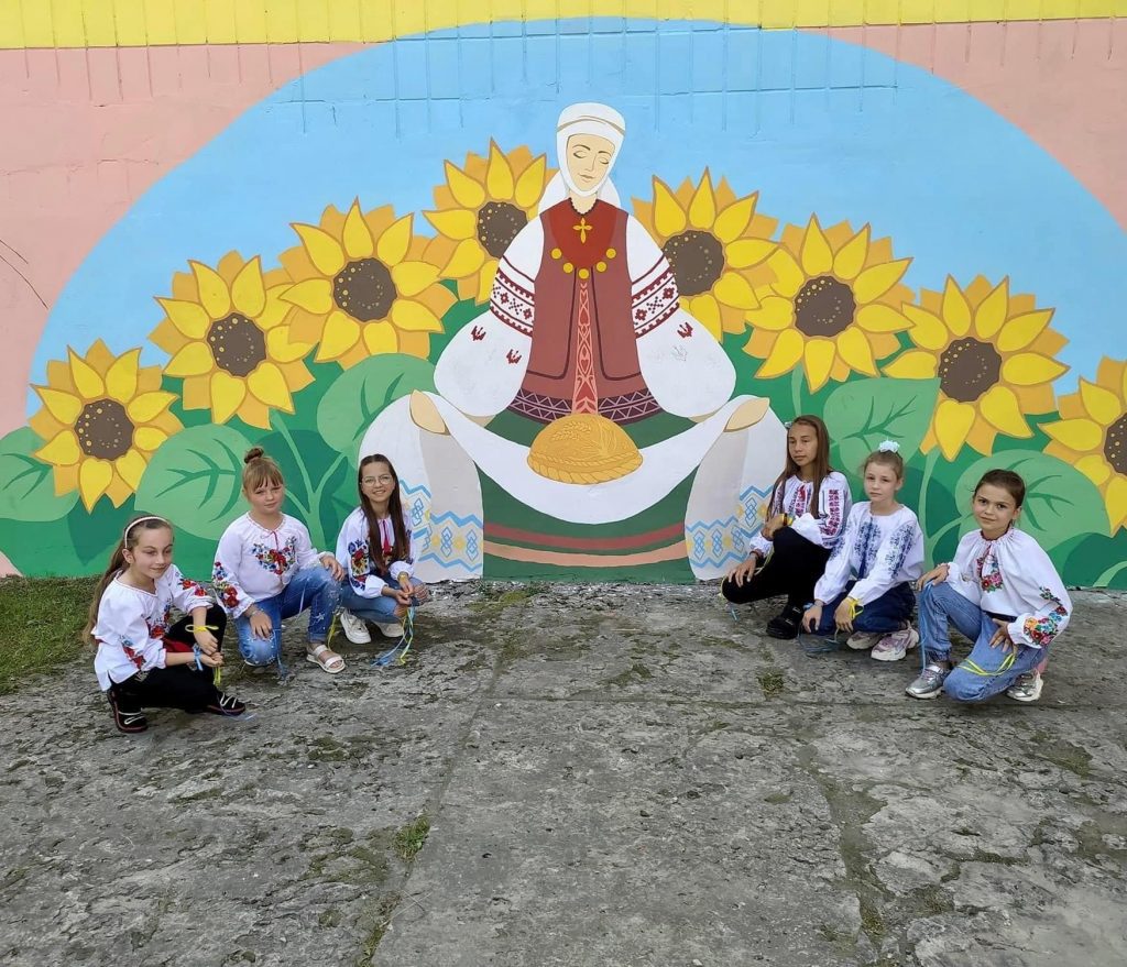 У селі Русивель Гощанської ТГ створили патріотичний мурал «Берегиня». Проєкт приурочили Дню Незалежності України, а розмістили малюнок на центральній стіні сільського клубу.