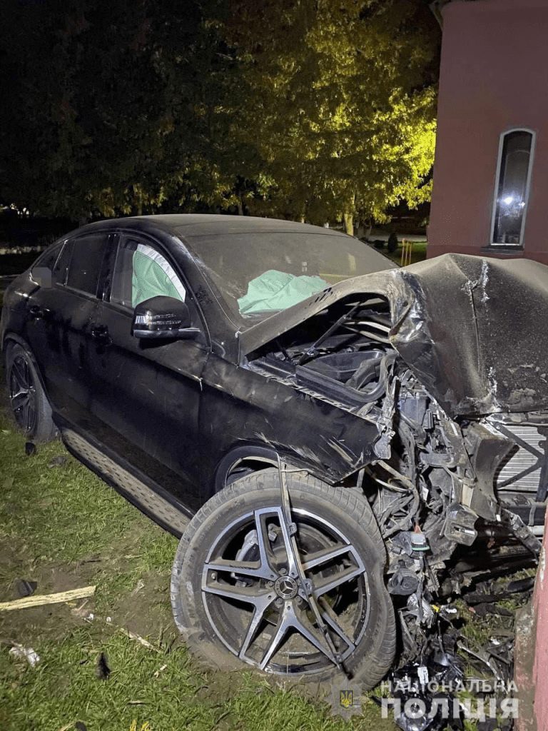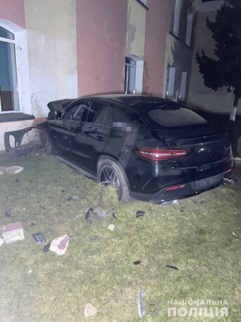 Поліцейські на місці події встановили, що на перехресті вулиць Чорновола-Грушевського 24-річна водійка автомобіля «Мercedes» виїхала за межі проїзної частини, знесла паркан та в’їхала у будівлю місцевого навчального закладу.