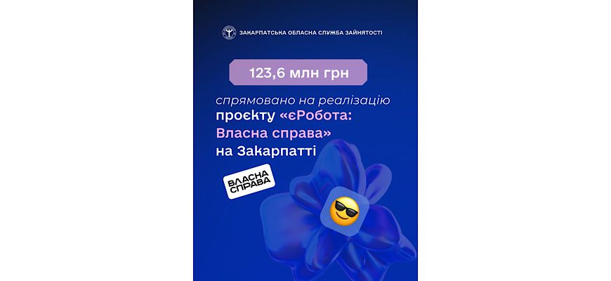 На Закарпатті на реалізацію проєкту «єРобота: Власна справа» спрямовано 123,6 млн