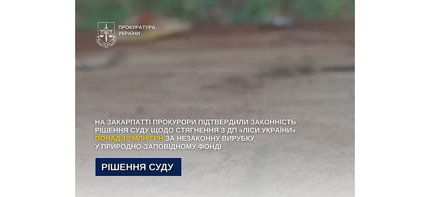На Закарпатті прокуратура забезпечила стягнення з ДП «Ліси України» понад 10,3 млн грн збитків, завданих незаконною вирубкою дерев у межах природно-заповідного фонду.