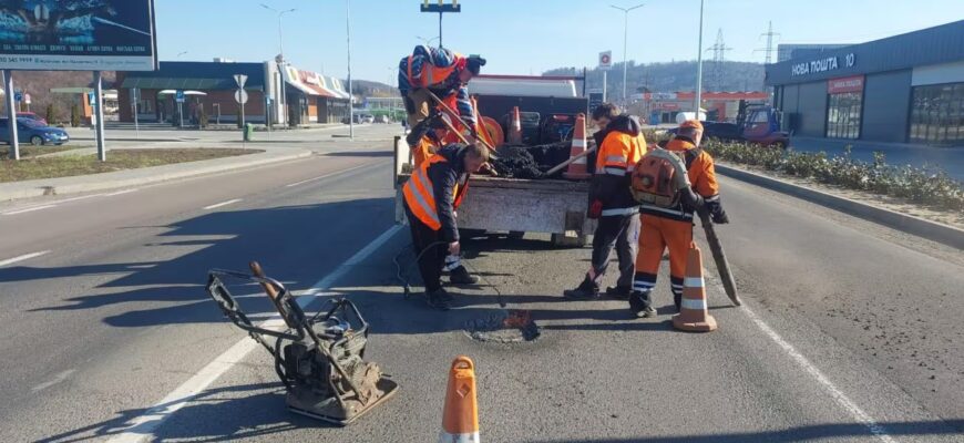 Наразі до виконання робіт залучили три бригади. Із 5 березня додатково працюватимуть ще дві одиниці спеціалізованої техніки для ліквідації ямковості струменевим методом.