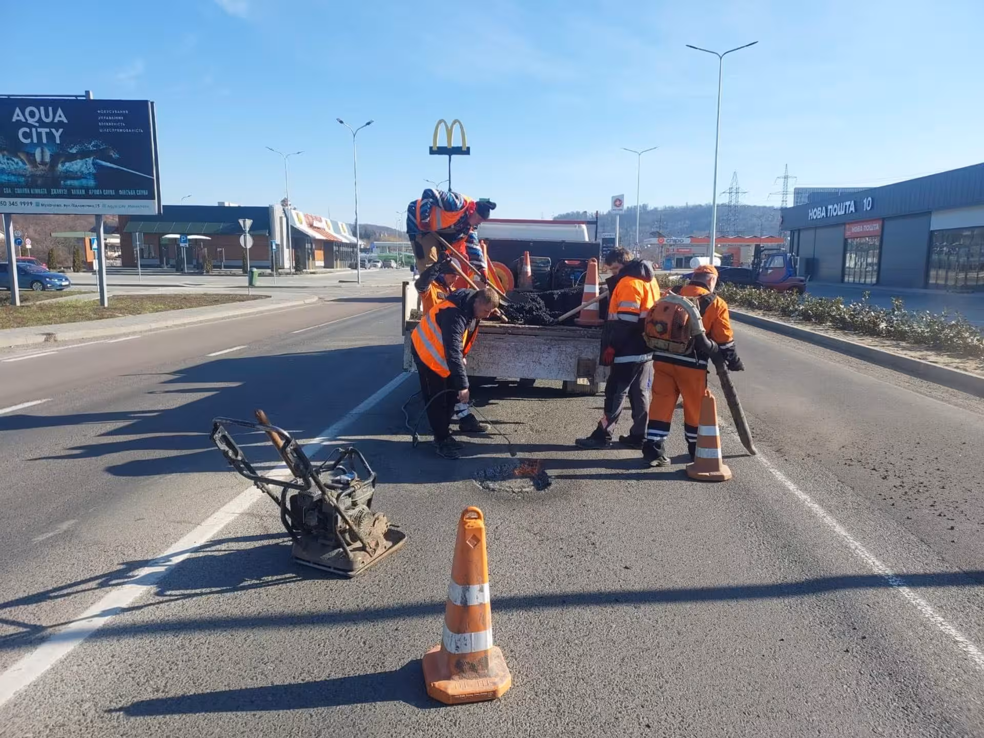 Дорожники відновили ямковий ремонт на автошляхах області. Роботи тривають на відрізку траси Київ – Чоп у межах Закарпаття та обʼїзній Ужгорода.