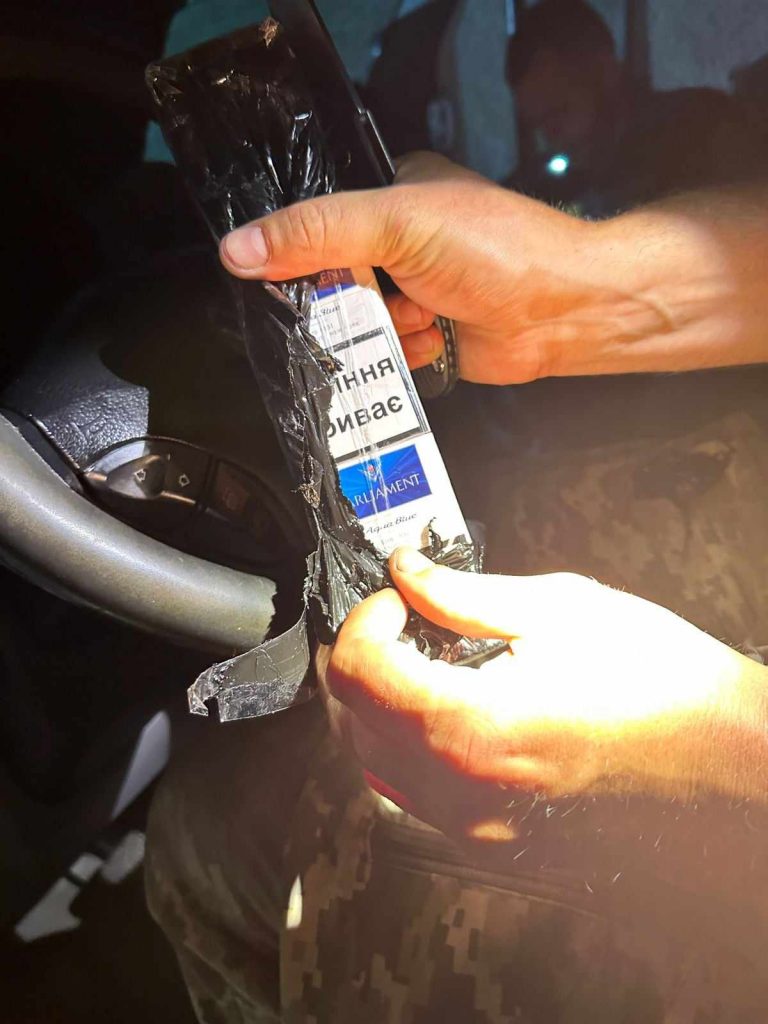 Так, тютюнові вироби дістали з ніші під водійським сидінням та з самого сидіння, а також з панелі приладів.