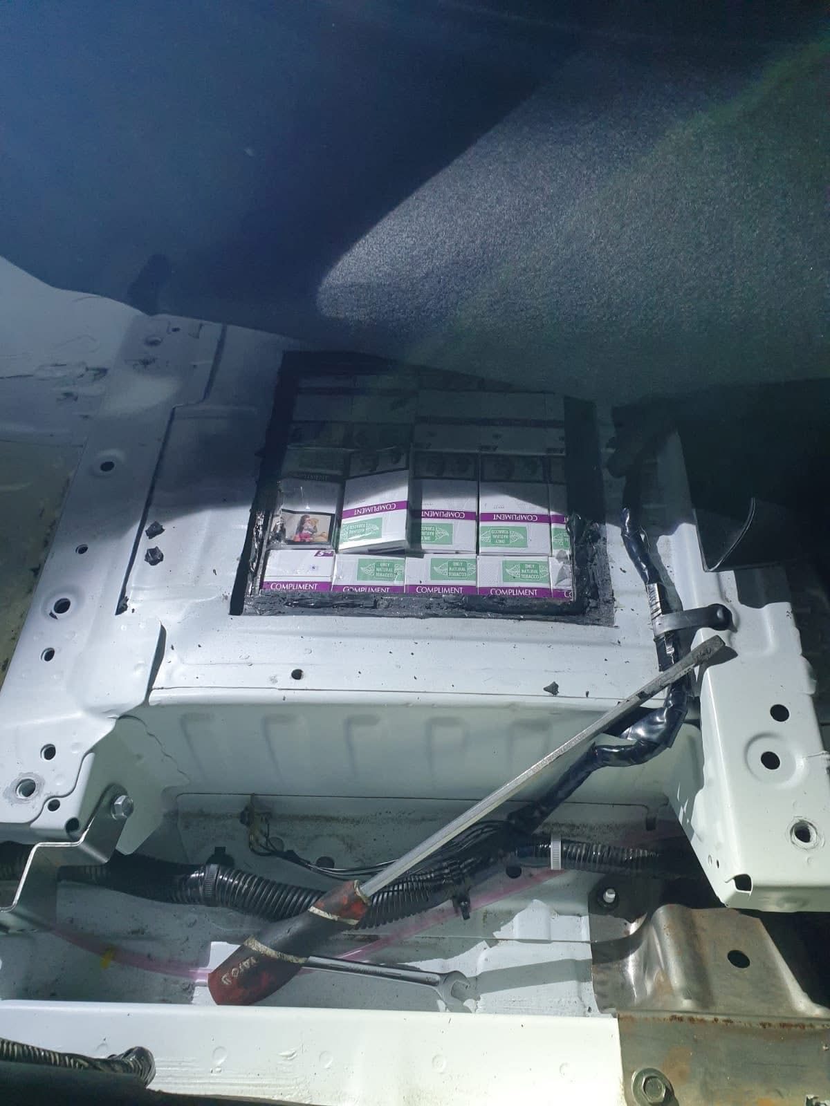 В результаті було виявлено спеціально виготовлений тайник у підлозі авто. Після демонтажу передніх сидінь та обшивки підлоги митники дістали з конструктивних порожнин транспортного засобу 1764 тютюнових виробів різних торгових марок, без акцизних марок України.