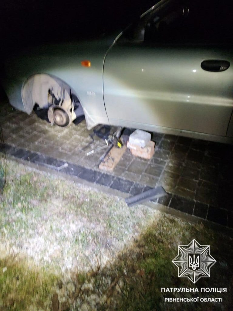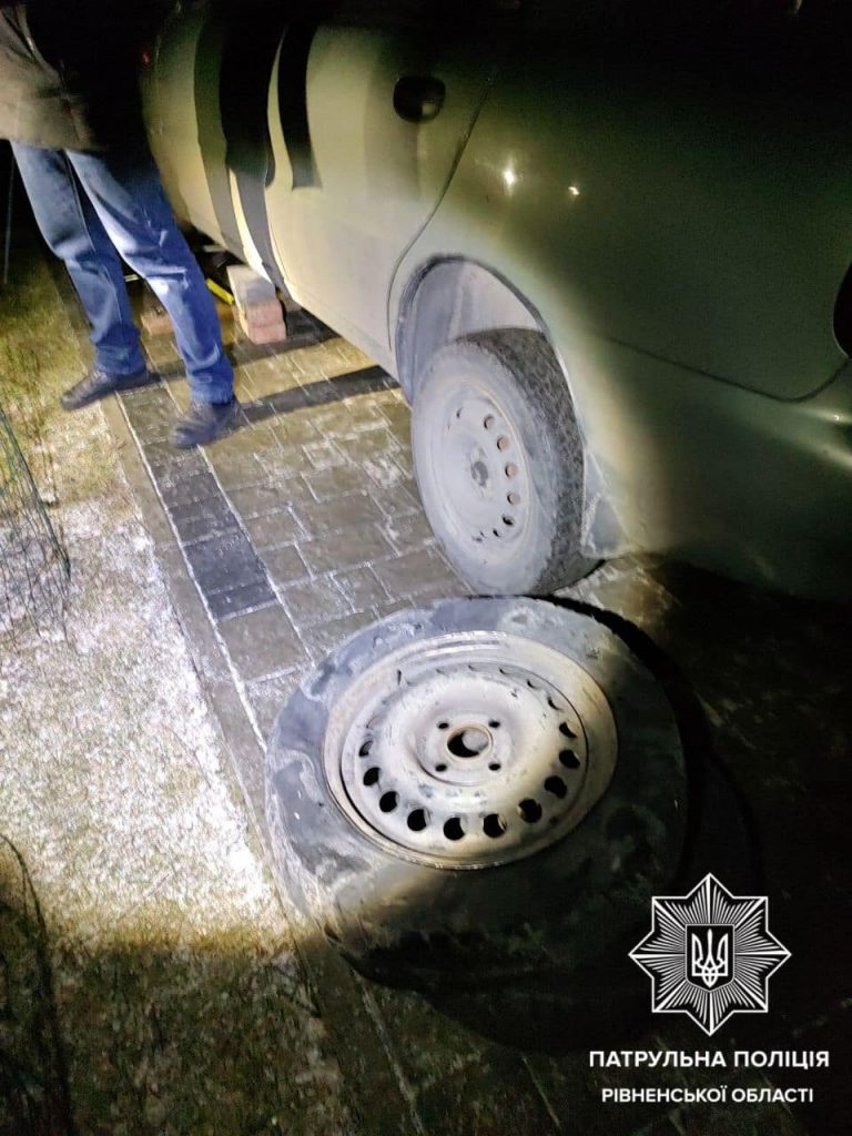 Сьогодні вночі на вулиці Соборній, патрульні помітили транспортний засіб ЗАЗ Daewoo, який рухався з пошкодженими передніми колесами.