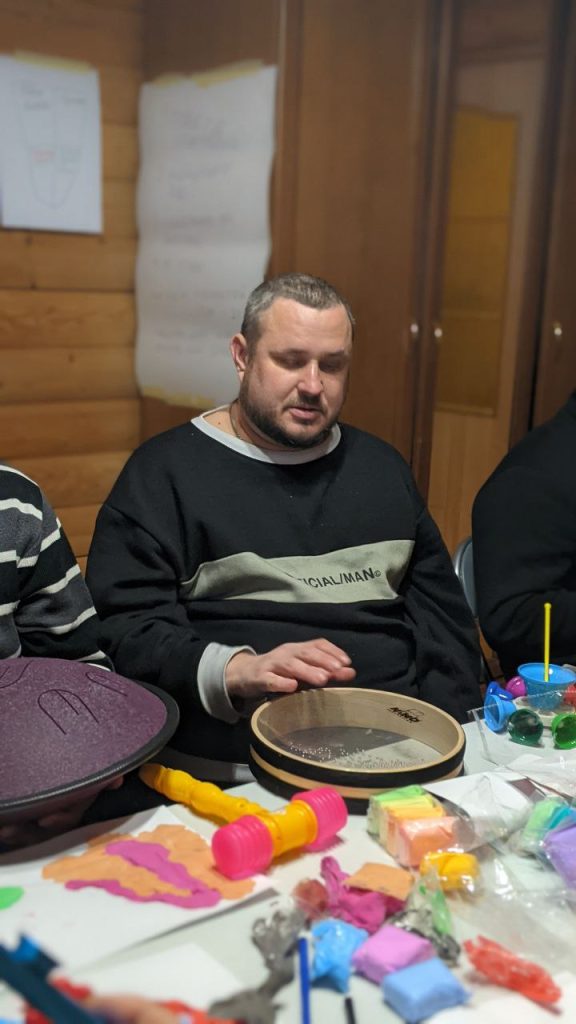 Потім – спільні заняття на синхронізацію та взаєморозуміння. Музичні кола, перкусія, творчі вправи, плейбек-театр (вперше для учасників і вперше на ветеранських ретритах). Було багато сміху та щирої підтримки. На юридичних консультаціях учасники дізнались про права, пільги та можливості для родин ветеранів.