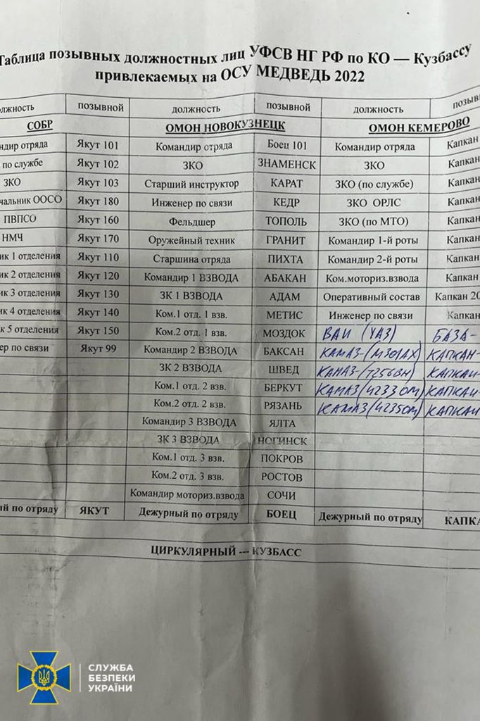 ▪️бойовий розрахунок з позивними бійців і командирів;
