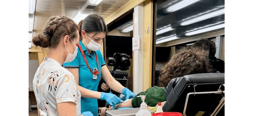 До слова, мобільний центр крові має п’ять ліжок для донорів та зручне місце для відпочинку до та після процедури. Є міні-лабораторія та локація для консультування з лікарем. На виїзді автобуса крові працює четверо кваліфікованих медиків, які супроводжують донорів упродовж усього процесу – від підготовки здачі крові до післяпроцедурного періоду. Для зберігання крові пацієнтів є спеціальний холодильник.