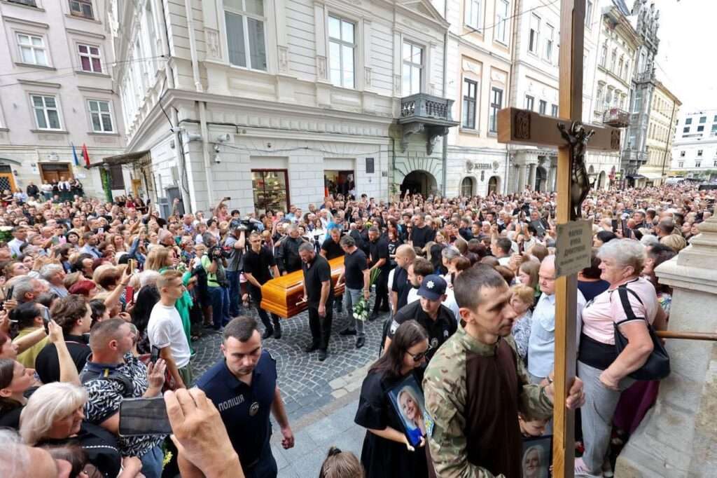Як повідомляє міський голова Львова Андрій Садовий, тисячі людей приєдналися до церемонії прощання.