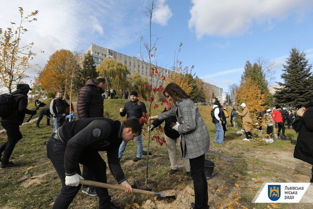 Сьогодні, 23 жовтня, у межах глобального екологічного проєкту «Greening the Planet», у Львові висаджують дерева. Головними локаціями озеленення стали центр міста, зокрема вул. Театральна, пл. Соборна, Бернардинський сад, пл. Ринок, пр. Свободи, пл. Підкови, а також територія біля клінічної лікарні швидкої допомоги – тут створили новий екопростір під назвою «Сад Здоров’я».