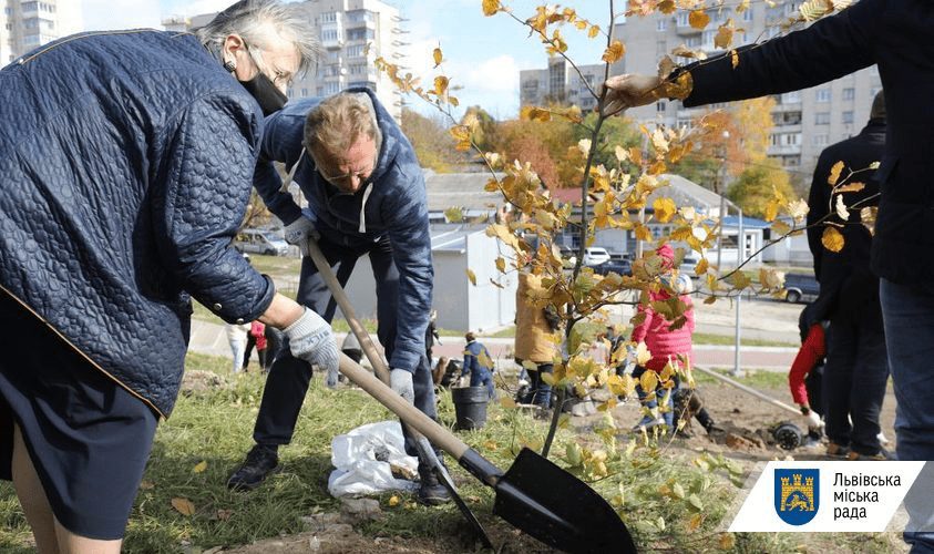 Сьогодні, 23 жовтня, у межах глобального екологічного проєкту «Greening the Planet», у Львові висаджують дерева. Головними локаціями озеленення стали центр міста, зокрема вул. Театральна, пл. Соборна, Бернардинський сад, пл. Ринок, пр. Свободи, пл. Підкови, а також територія біля клінічної лікарні швидкої допомоги – тут створили новий екопростір під назвою «Сад Здоров’я».