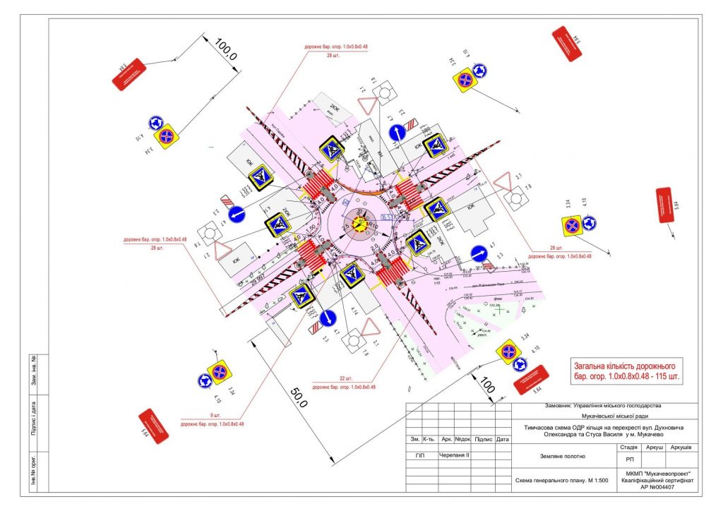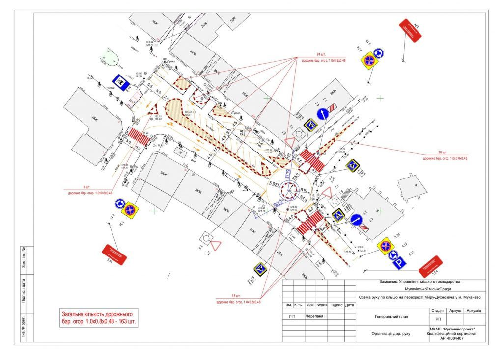 У неділю у Мукачеві облаштовуватимуть кільцеві розв’язки на 5 перехрестях, на яких запровадять нову схему руху.