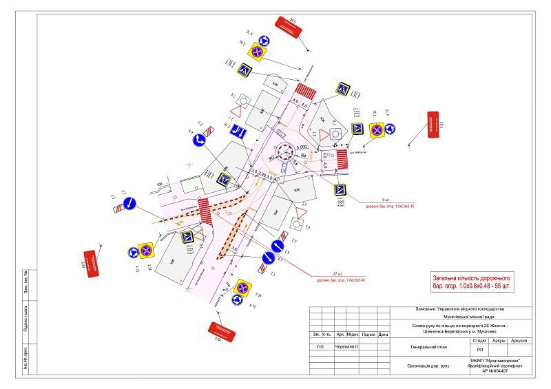 Тимчасовий кільцевий рух організують на перехрестях вулиць Валенберга-Беляєва, Духновича-Стуса, Духновича-Миру, Ринкова-Духновича та 26 Жовтня-Шевченка-Берегівська.