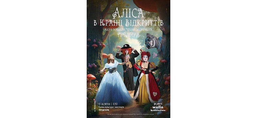 Вже зовсім скоро у Палаці культури і мистецтв Мукачева на вас та ваших дітей чекає чарівне шоу, де ви вирушите разом з Алісою та Капелюшником на пошуки зниклого Чеширського Кота!