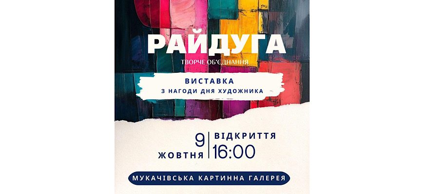 У четвер, 9 жовтня, у Мукачівській картинній галереї відбудеться відкриття виставки творчих робіт учасників мистецького об’єднання «Райдуга». Експозицію приурочено святкуванню Дня художника.