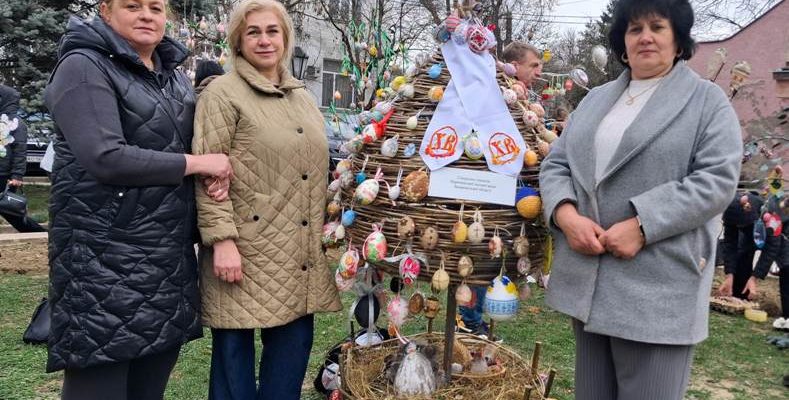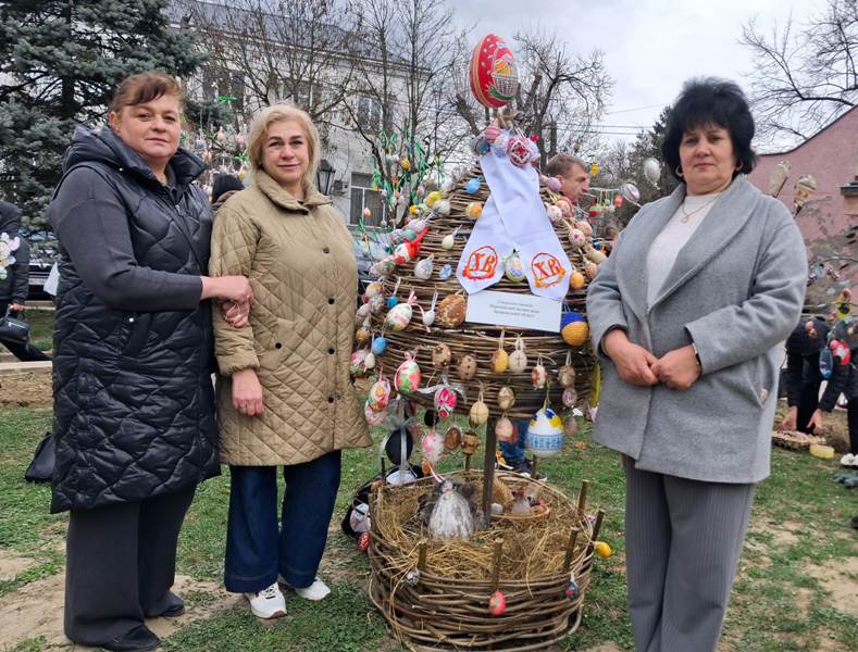 – У попередні роки на виставку ми везли ковані дерева, а тепер вирішили привезти яйце, бо саме яйце, писанка – символ Великодня, – пояснила мені Ксенія Андріївна. – Хоча виробу понад десять років, але на традиційній виставці громади презентуємо його вперше. Яйце сплів із ліщини наш колишній колега, воно знаходилося у шкільному музеї, а під час великодніх свят – на подвір’ї. Ми його бережемо, підправляємо, підфарбовуємо, оновлюємо. Наталія Іванівна побачила плетене яйце в мережі Інтернет, захопилася ним і попросила нашого колегу, робітника по ремонту, виготовити таке. Трудився він над цим виробом понад місяць.