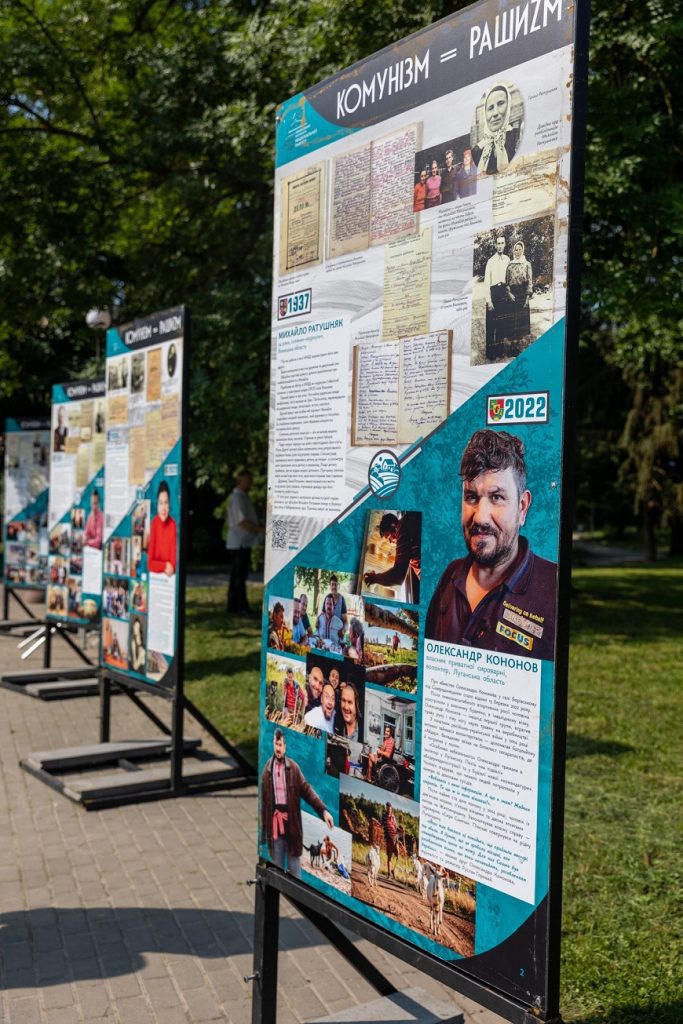На стендах представлені архівні документи про репресованих українців ХХ століття, а також свідчення про сучасні злочини російської армії.