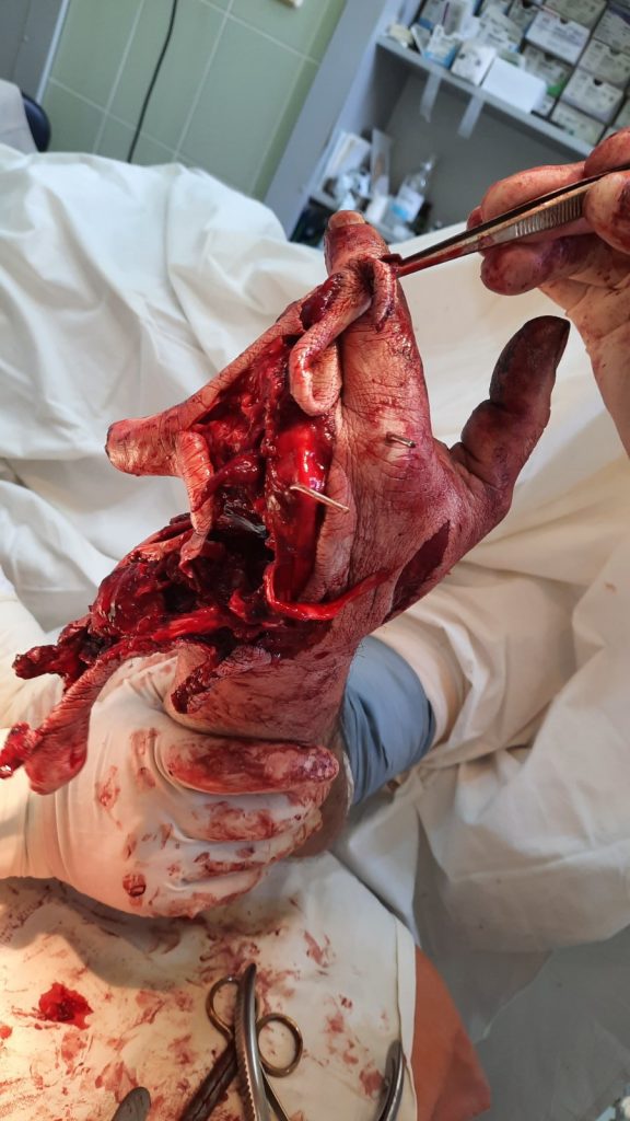 «Нам вдалося зберегти частину кисті руки – перші три пальці, які є основними пальцями в людини. На жаль, мізинець і безіменний палець, нам не вдалося врятувати. Була виконана складна первинна реконструкція кісток – аутопластика, тобто із залишків 4-го і 5-го пальця взяли м’які тканини і закрили ними дефекти на перших трьох пальцях, відновили судини, які живлять цю кисть та нерви. Післяопераційний період проходив без ускладнень. Сам пацієнт залишився задоволений, що після отриманої важкої травми, вдалося уникнути ампутації. Реабілітація буде довгою, пацієнту потрібно буде час від часу приїздити до нас для огляду та подальших рекомендацій по відновленню».