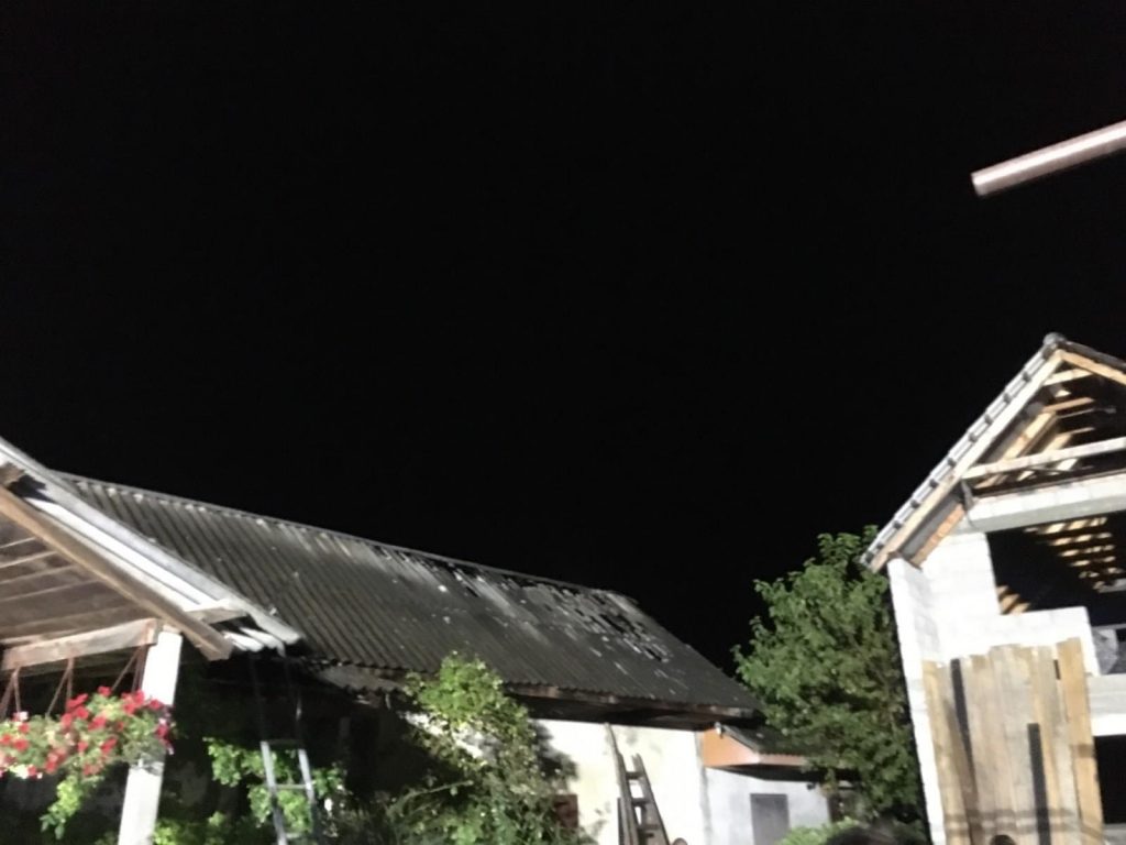 У результаті знищено 30 кв.м покрівлі та перекриття прибудови, а також речі домашнього вжитку.