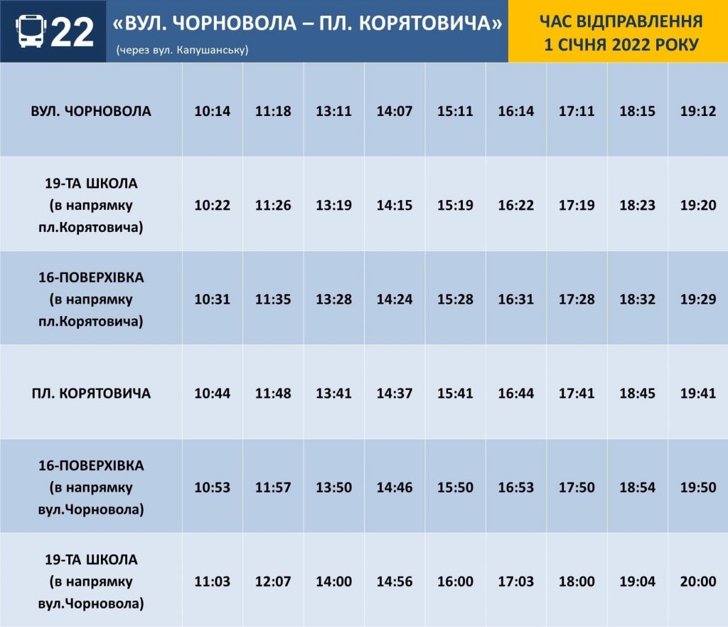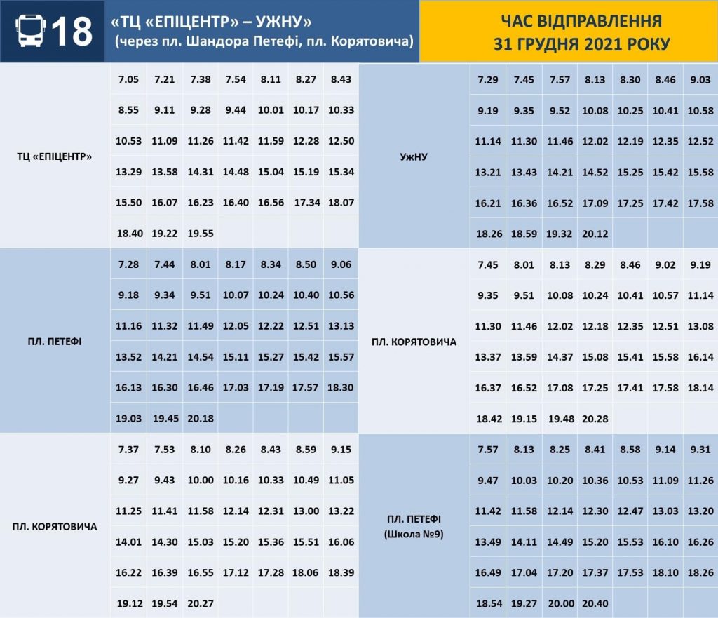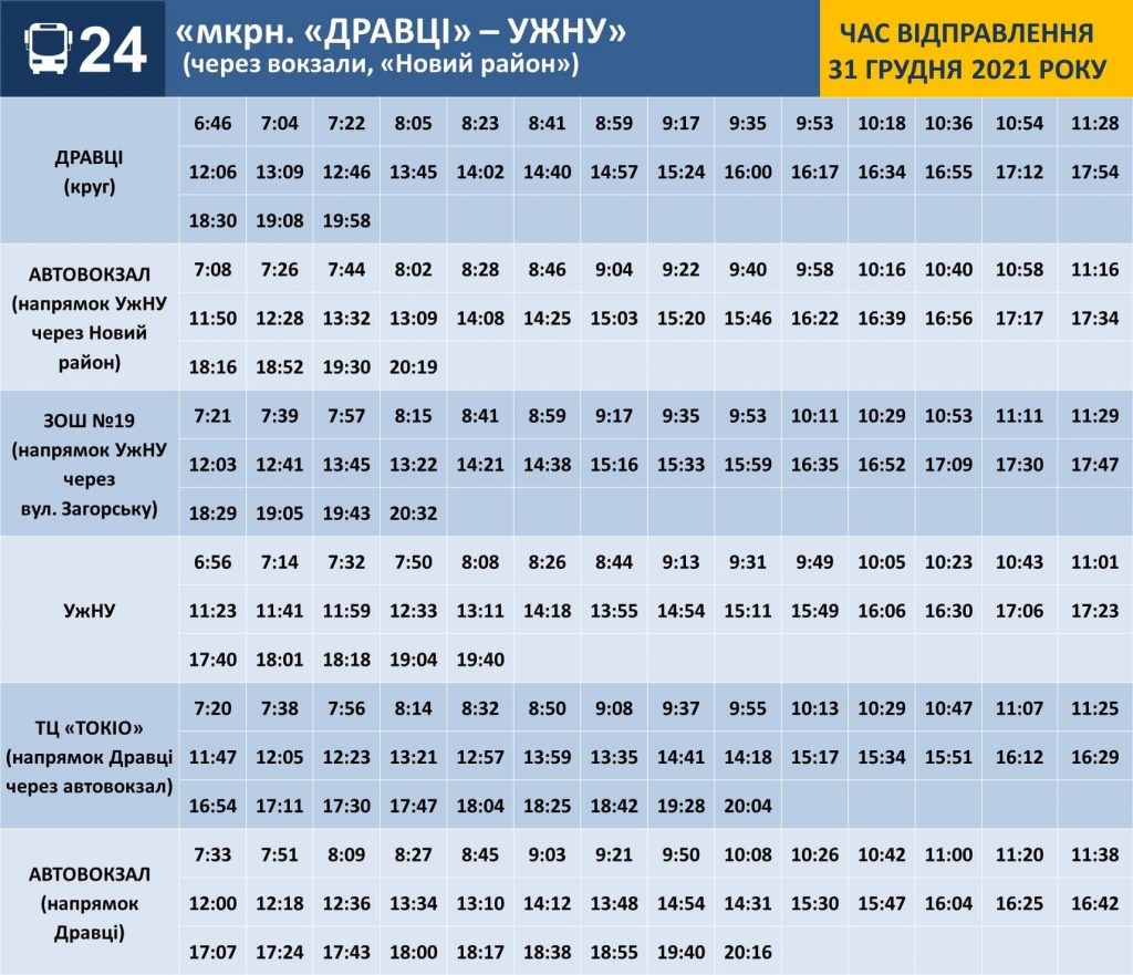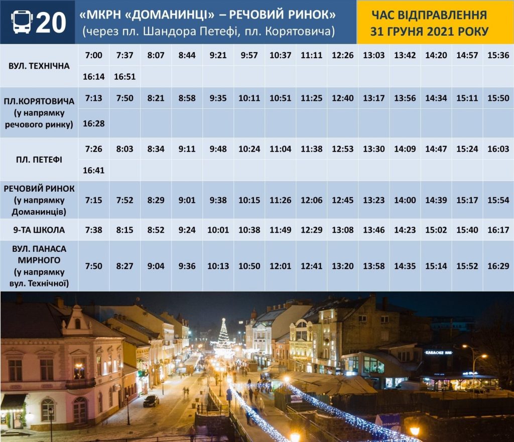 Ужгородська міська рада оприлюднила розклад руху автобусів міських маршрутів у новорічно-різдвяні свята: