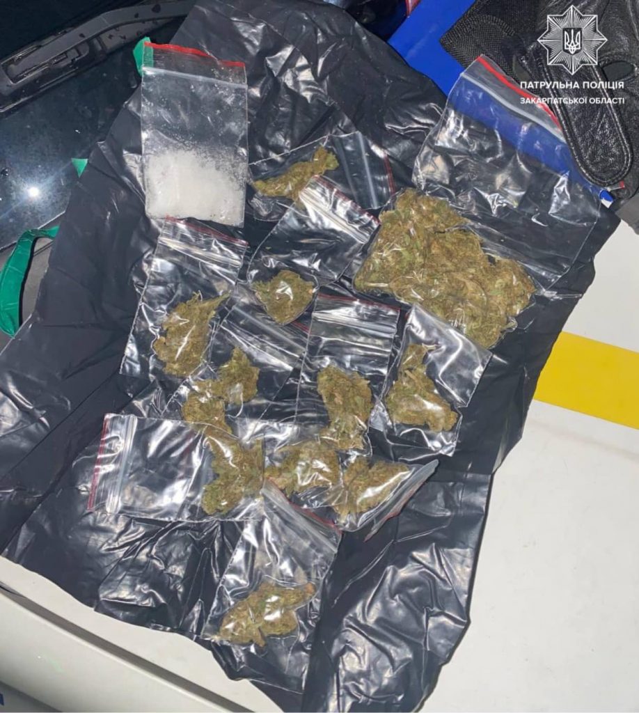 Згодом інспектори виявили у правій кишені куртки великий поліетиленовий пакет, у якому були 11 zip-пакетів із зеленою речовиною, зовні схожою на наркотичну. Окрім того, у правій рукавиці поліцейські виявили поліетиленовий пакет з кристалоподібною речовиною білого кольору, імовірно, наркотичною.