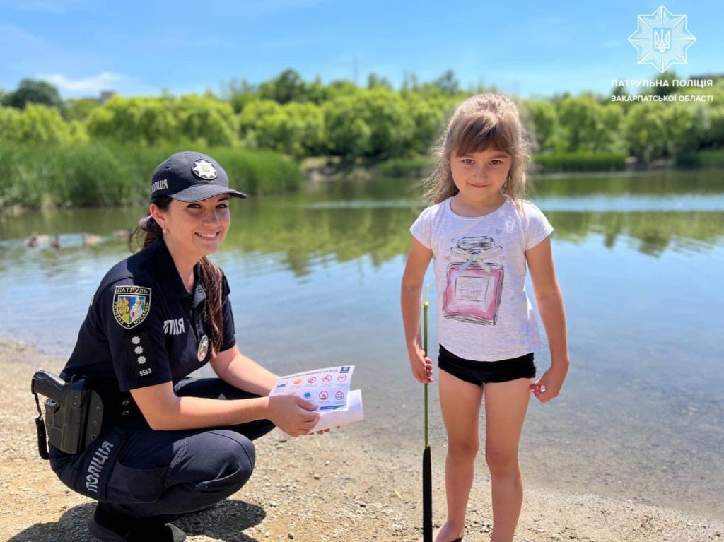 Кожному патрульні роздали інформарційну листівку з правилами поведінки біля водойм.