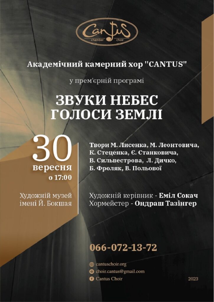 Головна » Анонс В останній день вересня хор Cantus відкриє новий концертний сезон Опубліковано: 17:30, 24.09.2023 Анонс Відкриття 32 концертного сезону камерного хору “Cantus” відбудеться 30 вересня. Концерт “Звуки небес. Голоси землі”.