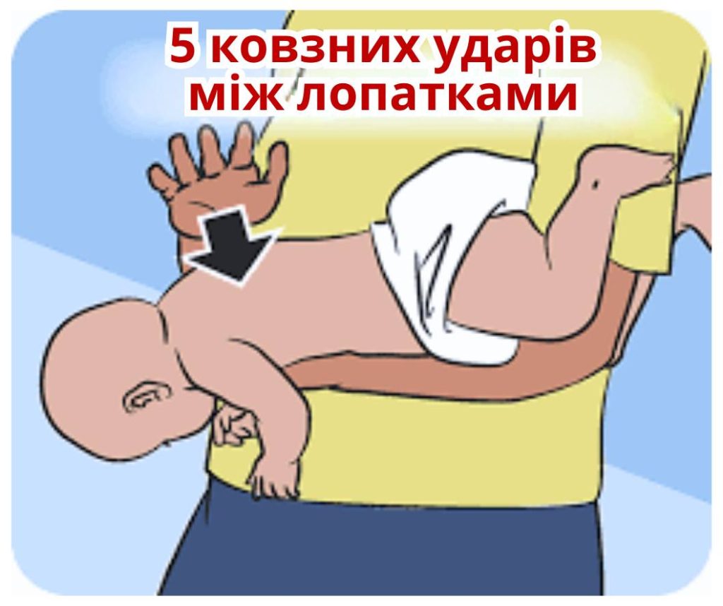 Повторюйте удари й поштовхи до виходу стороннього тіла.