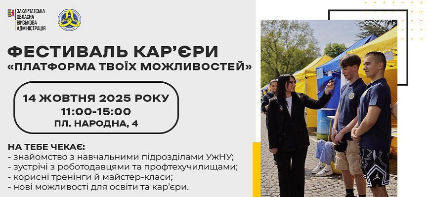 14 жовтня в Ужгороді (пл.Народна, 4) відбудеться масштабний фестиваль кар’єри «Платформа твоїх можливостей».