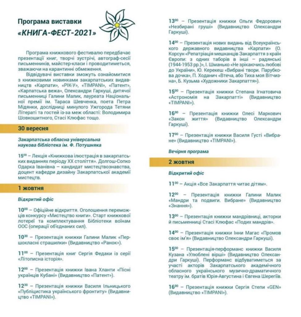 Вже вдруге виставка відбудеться у парку Малий Галагов біля облдержадміністрації, а у Відкритому офісі автори та видавці презентуватимуть свої книги закарпатцям і гостям області.