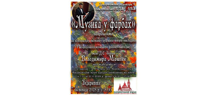 Три слови, які значать набагато більше, ніж може здатися на перший погляд. Вони пронизують життєвий шлях педагога, музиканта та художника Володимира Машіки. Усю багатогранність творчої натури доведе персональна виставка художніх творів «Музика у фарбах».