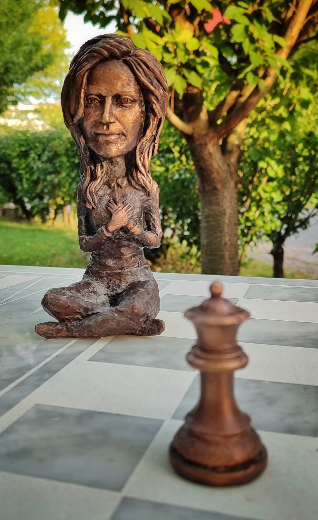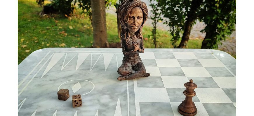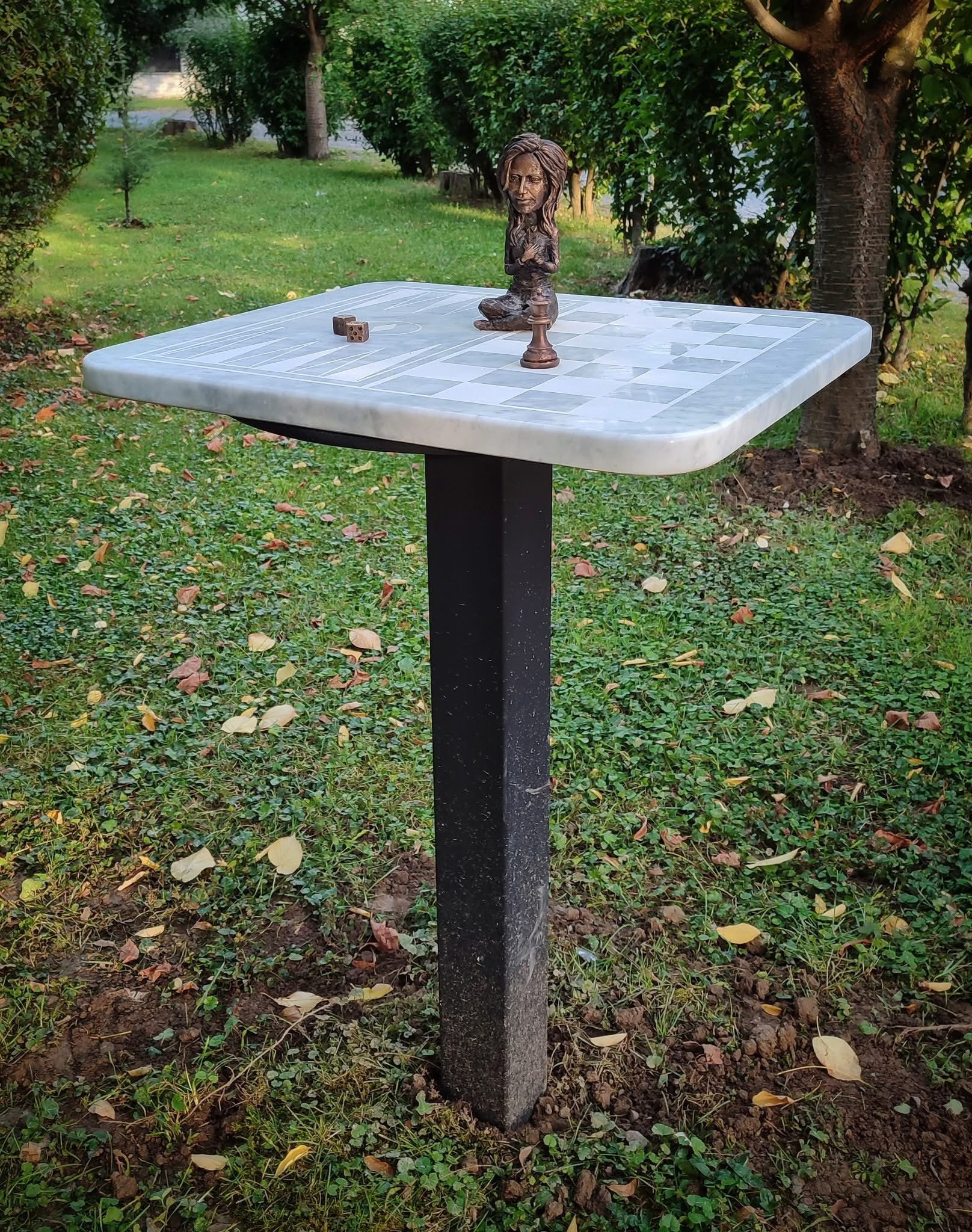Скульптура являє собою мармурову дошку на п’єдесталі, розділену на шахове поле і поле з нардами. На шахівниці стоїть шахова фігура – Королева, на честь Юдіт. На нардовій частині пара кубиків (федерація нард України знаходиться в Ужгороді). Посередині, у позі медитації, сидить фігурка Юдіт.