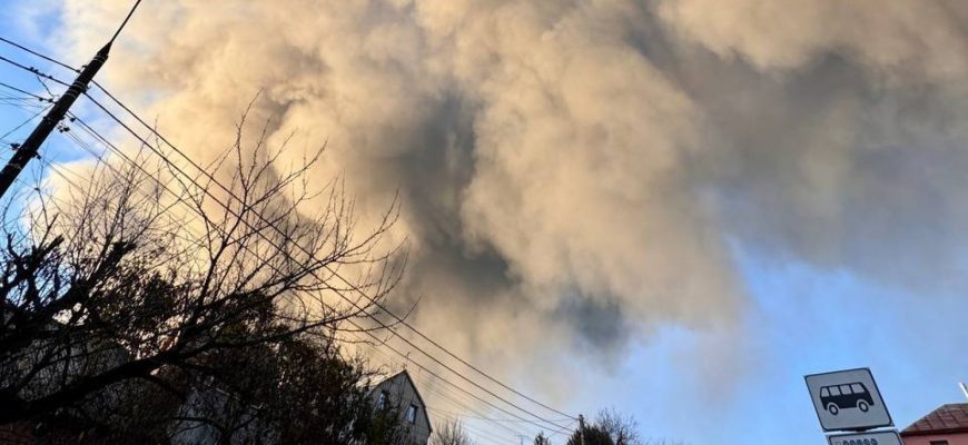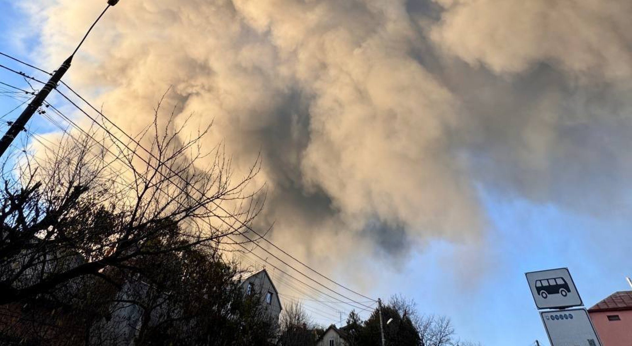 Над Львовом після обстрілу — густий дим. Мер Андрій Садовий розповів, що це наслідок загоряння складів із шинами, куди поцілили окупанти.