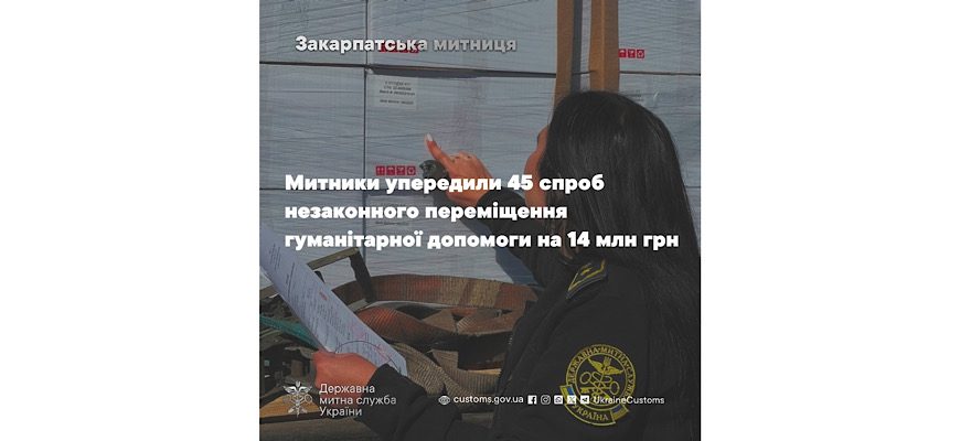 Закарпатська митниця на постійній основі здійснює комплекс заходів, спрямованих на виявлення, припинення та попередження фактів незаконного переміщення через митний кордон України вантажів гуманітарної допомоги. Зокрема, їх недекларування, недоставляння до отримувачів або ж приховування комерційних товарів під виглядом гуманітарних вантажів з метою ухилення від оподаткування та протиправного отримання прибутку в умовах воєнного стану.