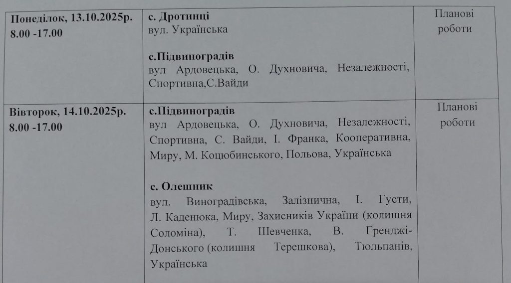 Виноградівська міська рада відповідно до інформації ПрАТ «Закарпаттяобленерго» повідомляє про планові відключення електричної енергії.